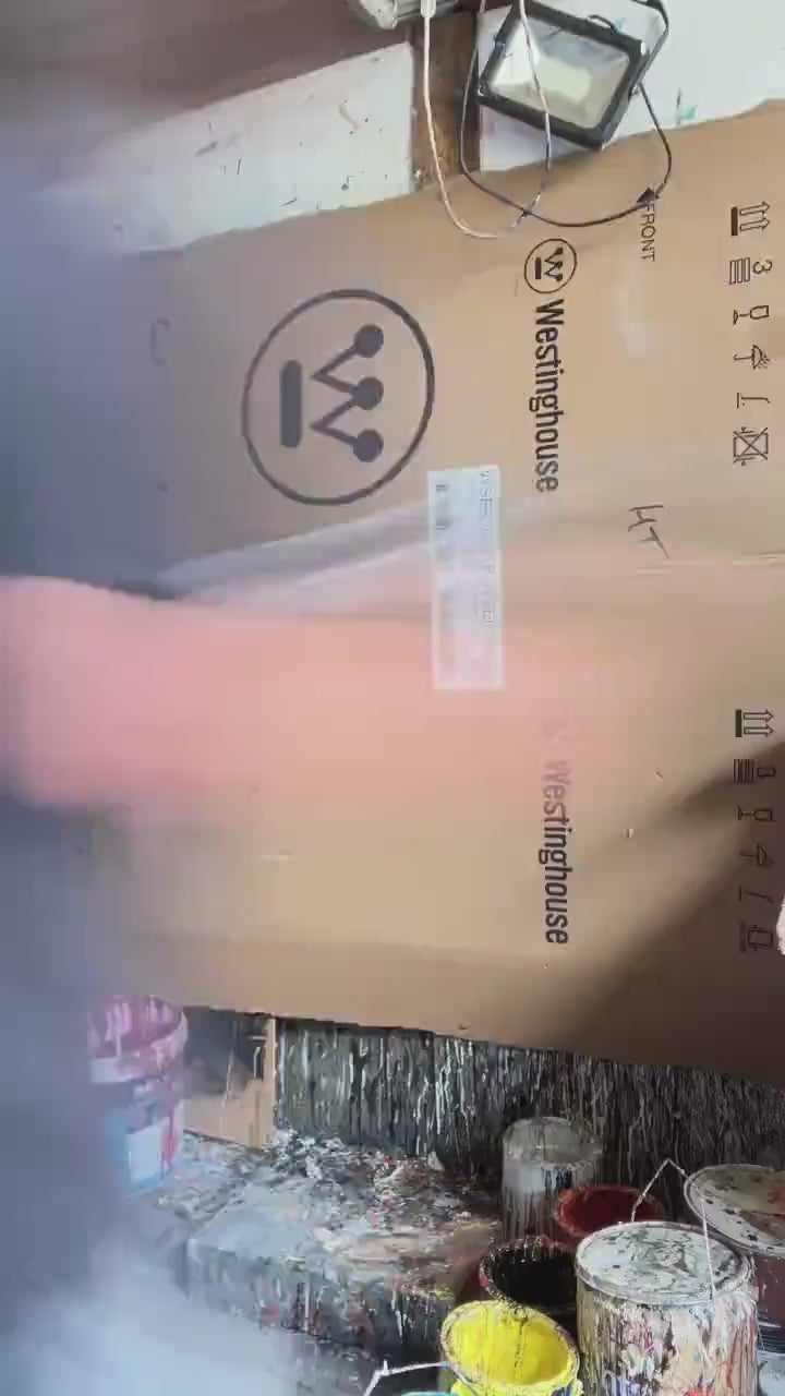 With a multitude of different colours making up the tonal values and the use of the cardboard markings and paint dribbles, his works show strength, uniqueness and a rawness within.